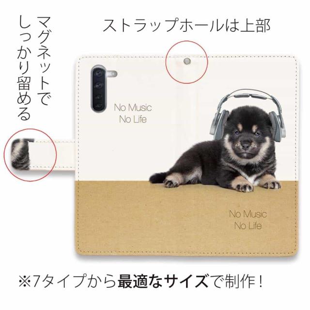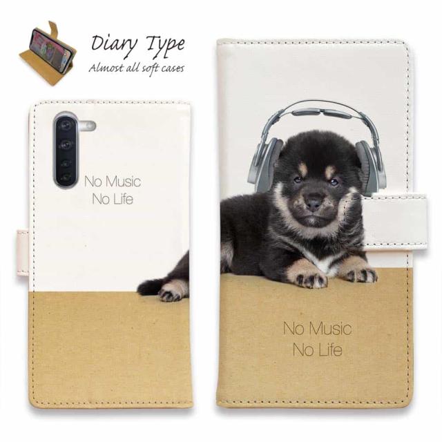 Android スマホケース 手帳型 マグネット カード収納 OPPO Reno5 A OPPO Reno3 A Android One S8 ケース シンプルスマホ6 らくらくスマートフォン LG V60 ThinQ xiaomi mi URBANO アンドロイド ケース 犬 イヌ 用品 雑貨 黒柴(柴犬)子犬だってNo Music No Life