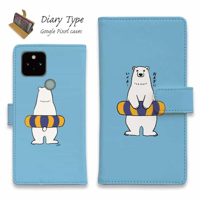 Google Pixel 10 Pro XL ピクセル10 プロ スマホケース 手帳型 マグネット カード収納 Google Pixel9a Pro Google Pixel8a Pro Google Pixel7a Pro Google Pixel6a Google Pixel6 しろくま 白熊 白クマ おしゃれ シロクマと浮き輪(wakat)