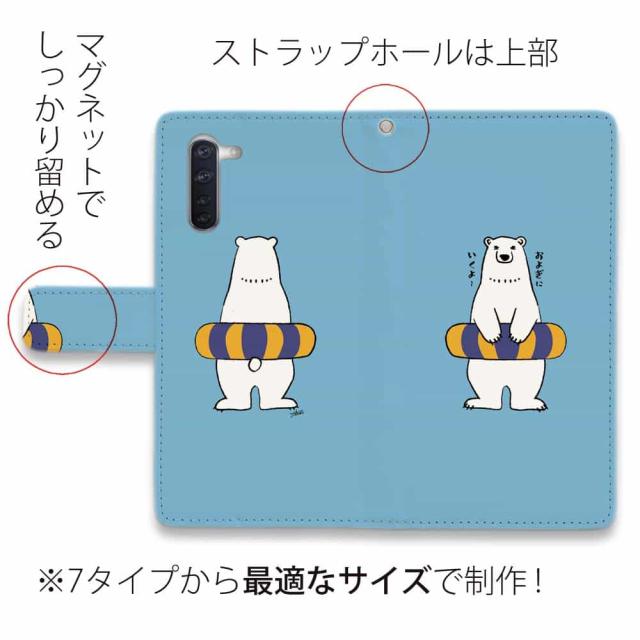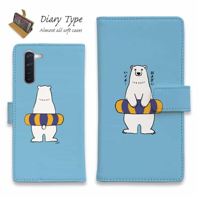 Android スマホケース 手帳型 マグネット カード収納 OPPO Reno5 A OPPO Reno3 A Android One S8 ケース シンプルスマホ6 らくらくスマートフォン LG V60 ThinQ xiaomi mi URBANO アンドロイド ケース しろくま 白熊 白クマ おしゃれ シロクマと浮き輪(wakat)