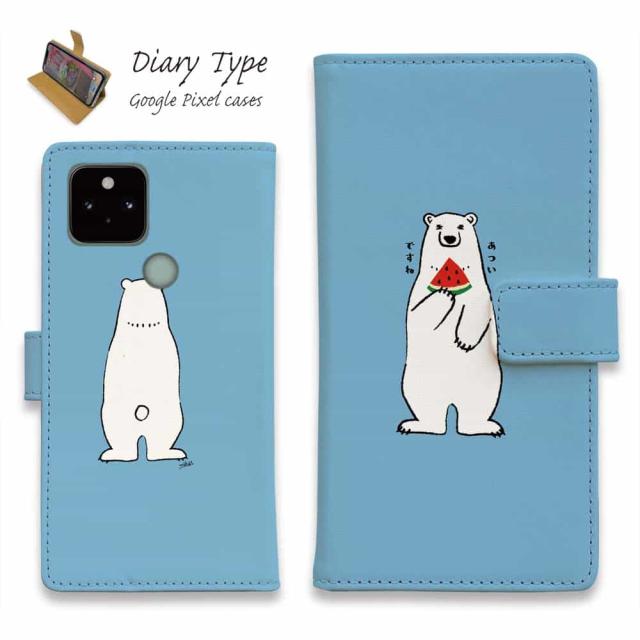 Google Pixel 10 Pro XL ピクセル10 プロ スマホケース 手帳型 マグネット カード収納 Google Pixel9a Pro Google Pixel8a Pro Google Pixel7a Pro Google Pixel6a Google Pixel6 しろくま 白熊 白クマ おしゃれ シロクマとスイカ(wakat)