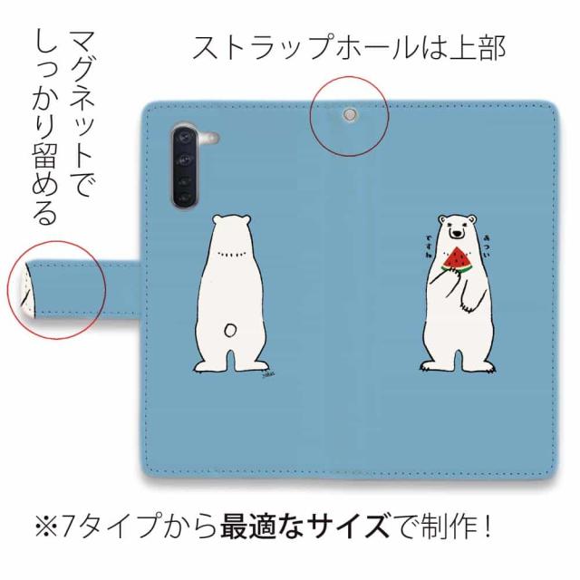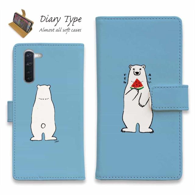 Android スマホケース 手帳型 マグネット カード収納 OPPO Reno5 A OPPO Reno3 A Android One S8 ケース シンプルスマホ6 らくらくスマートフォン LG V60 ThinQ xiaomi mi URBANO アンドロイド ケース しろくま 白熊 白クマ おしゃれ シロクマとスイカ(wakat)