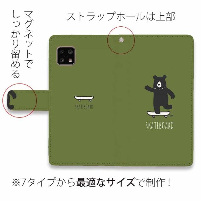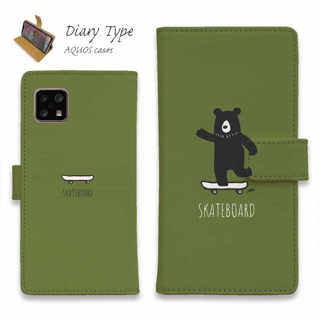 AQUOS sense10 アクオス センス10 スマホケース 手帳型 マグネット カード収納 AQUOS sense9 sense8 R9 R8 Pro wish4 wish3 sense7 plus ケース sense6 sense4 アクオス ケース 熊 クマ 雑貨 小物 スケボークマさん(wakat)