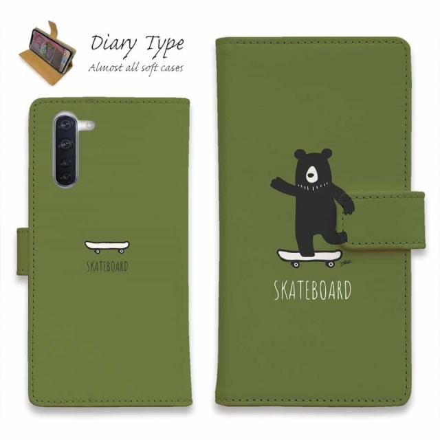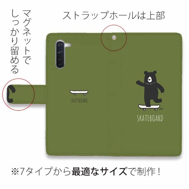 Android スマホケース 手帳型 マグネット カード収納 OPPO Reno5 A OPPO Reno3 A Android One S8 ケース シンプルスマホ6 らくらくスマートフォン LG V60 ThinQ xiaomi mi URBANO アンドロイド ケース 熊 クマ 雑貨 小物 スケボークマさん(wakat)
