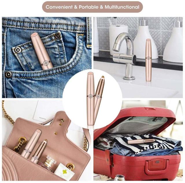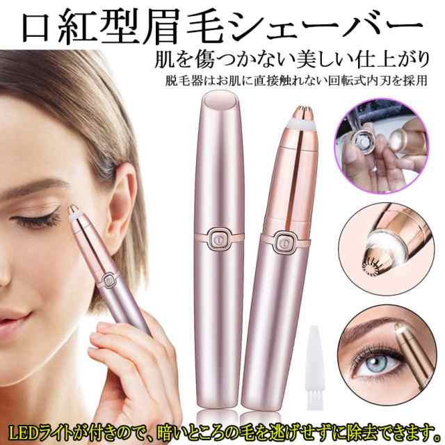 眉毛シェーバー 電動式 レディース 眉剃り 眉毛カッター 眉毛トリマー 脱毛器 フェイスシェーバー LEDライト 360°回転 眉用 軽量 持ち運び便利 口紅スタイル 水洗いOK 美容 男女兼用 プレゼント 電池式