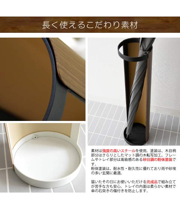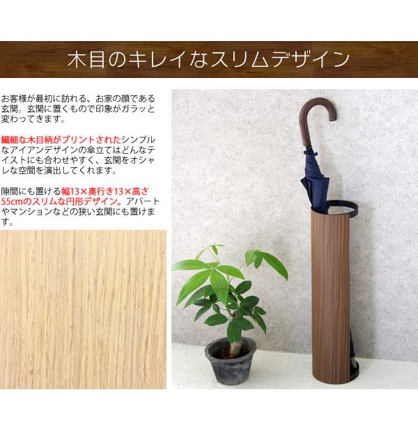 上品で繊細な木目柄が転写されたスチールデザインのスリムアンブレラスタンド。
