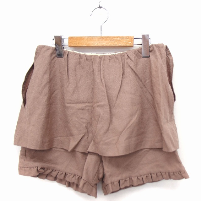 【中古】バルコニーアンドベッド Balcony and Bed パンツ キュロット ショート丈 無地 フリル ウール 40