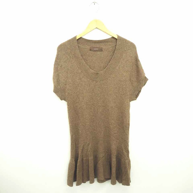 【中古】ルカ LUCA ワンピース ニット 膝下丈 ウール フレア 無地 プルオーバー 半袖 茶 ブラウン /TT33 レディース