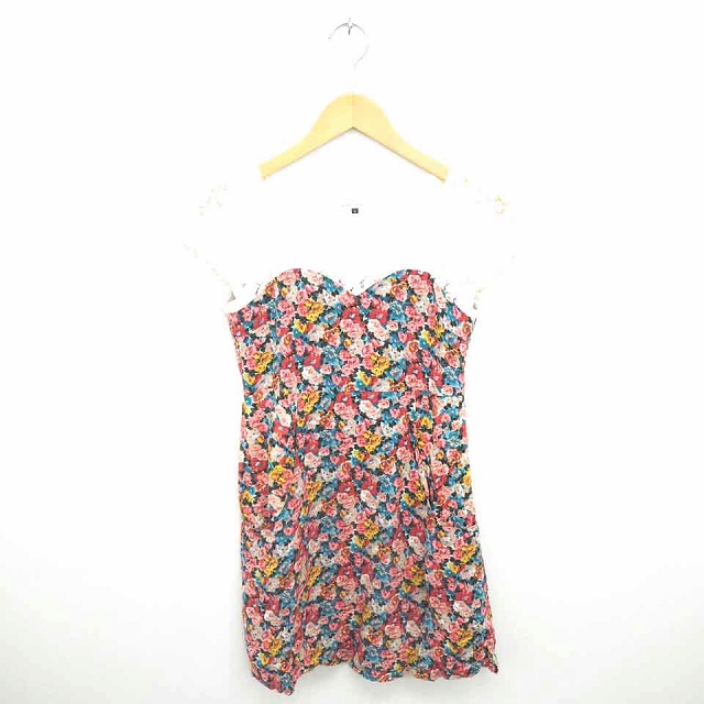 【中古】マーキュリーデュオ MERCURYDUO ワンピース ひざ丈 花柄 レース 薄手 プルオーバー 半袖 F アイボリー ピンク
