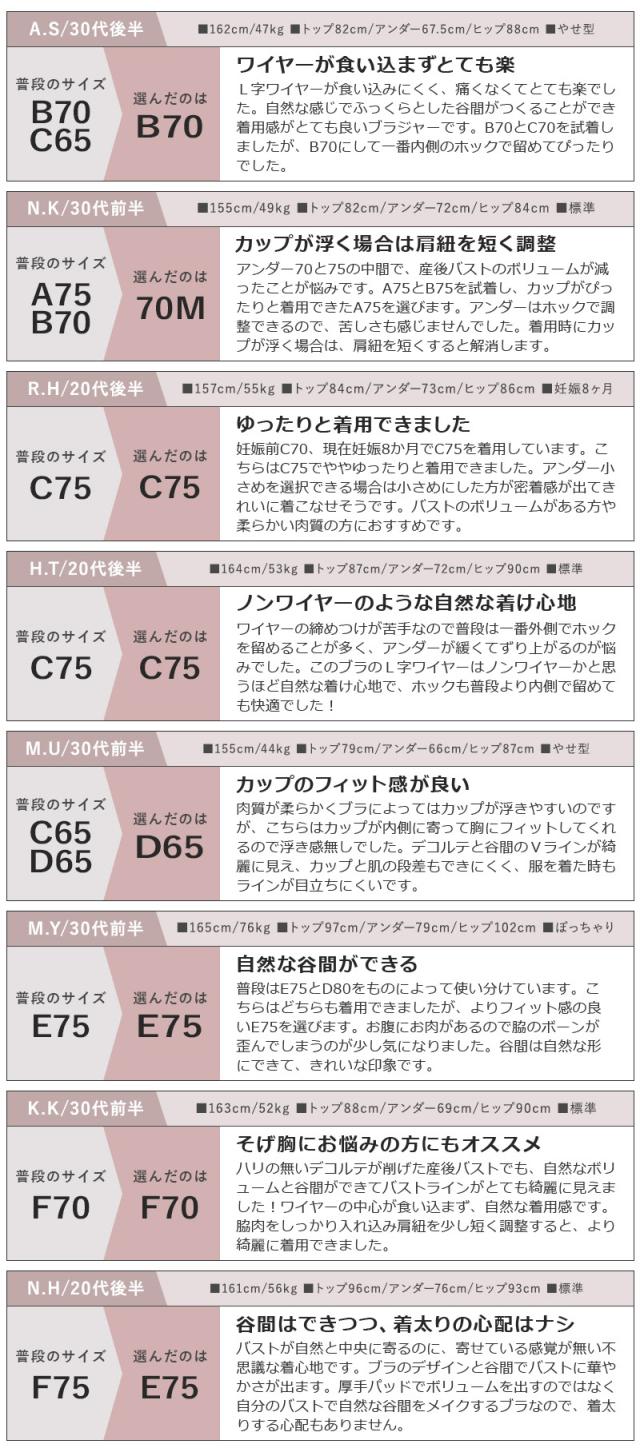 - 普段F80で、今回F80を購入しました。 アンダーはちょうど良かったです。 カップは少し小さい感じがしましたが、まぁ、許容範囲です。 ワイヤーがL型との事でどんなものかと思っていましたが、谷間が自然に...