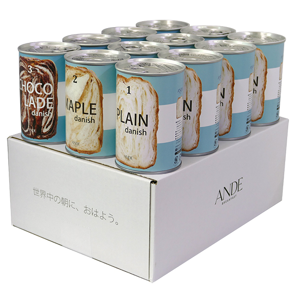 ANDE デニッシュ缶 3種(プレーン・メープル・ショコラーデ) 各4個 12缶セット (保存食/非常食/防災食/備蓄食) 京都デニッシュパン専門店アンデ