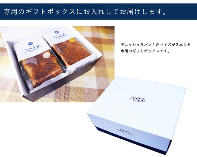 デニッシュ 食パン ギフト (ボックス付き) ANDE シナモンりんご1斤とメープル・抹茶大納言各ハーフサイズ 3点セット