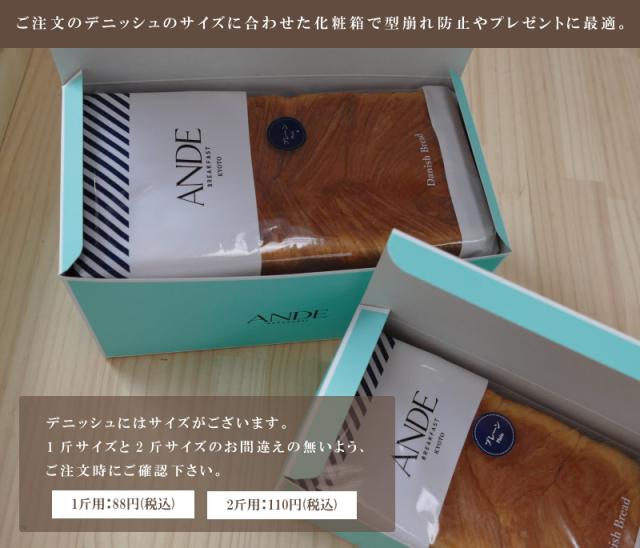 ・1斤サイズのデニッシュにちょうどいい化粧箱です。