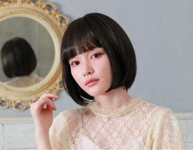 ナチュラルに切り揃えられたぱっつん前髪と、毛先ワンカールのシンプルな王道ボブスタイルです。