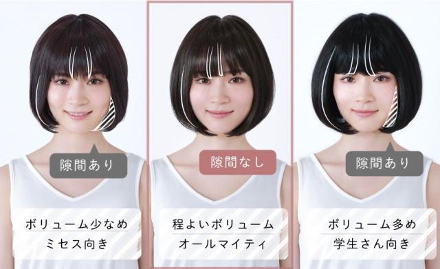 自毛をまったく見せずにスッポリかぶる「かつら」タイプのウィッグ。