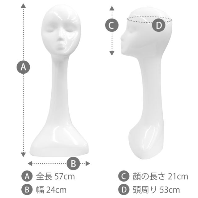 ★ウィッグ用マネキンLはつむじから約60cmまでの長さのウィッグに対応します。