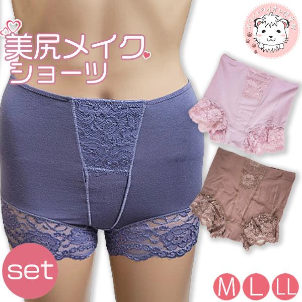 美尻 1分丈ショーツ レディース はき口レース 深ばき ショーツ 3枚セット M/L/LL