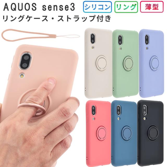 AQUOS sense3 ケース シリコンリング スマホケース SHV45 SHV48 スマホカバー sense3 lite basic 携帯ケース au携帯カバー おしゃれ シンプル シリコン 耐衝撃 保護 カバー ソフトケース SH-02M SH02M SH-RM12 SHRM12 アクオスセンス3 ライト カラフル スマホリング