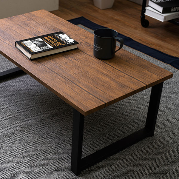 木目調シートとスチールの組み合わせが魅力的なセンターテーブル