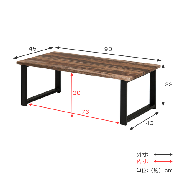 センターテーブル 幅90cm 奥行45cm 木目調 スチール脚 テーブル ローテーブル ( リビングテーブル 机 カフェテーブル ソファテーブル 幅 90 リビング おしゃれ 長方形 コーヒーテーブル 作業机 作業台 ワークスペース )