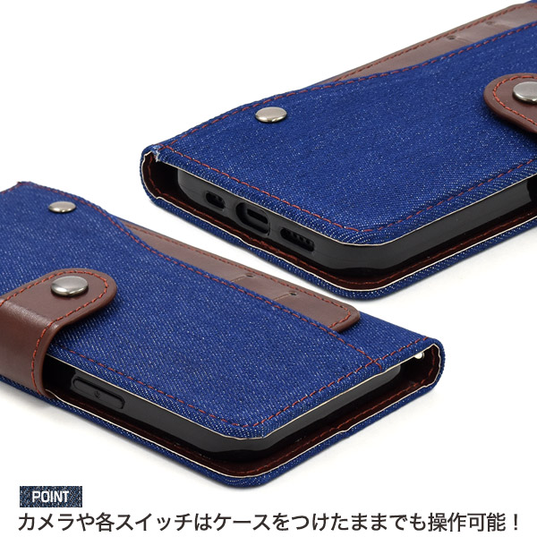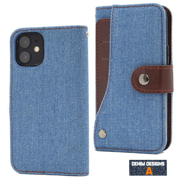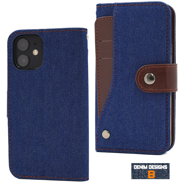 iPhone 12 mini用 デニム スライドカードポケット手帳型ケース