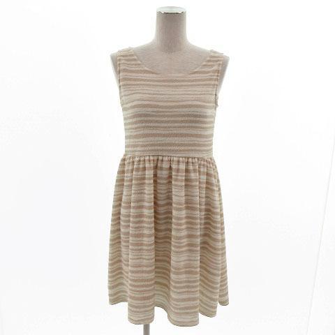 【中古】オペーク OPAQUE ワンピース ひざ丈 ノースリーブ ボーダー アイボリー ブラウン系 茶系 8 レディース