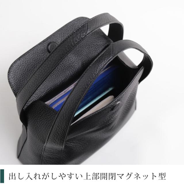 隠しマグネットボタンでバッグ上部の開口部がサッと開くので、荷物の出し入れがスムーズに出来て、蓋を簡単に閉めることができます。