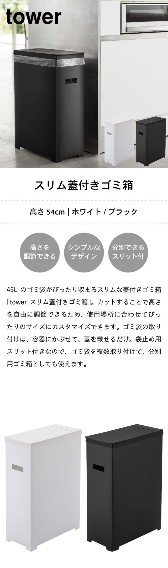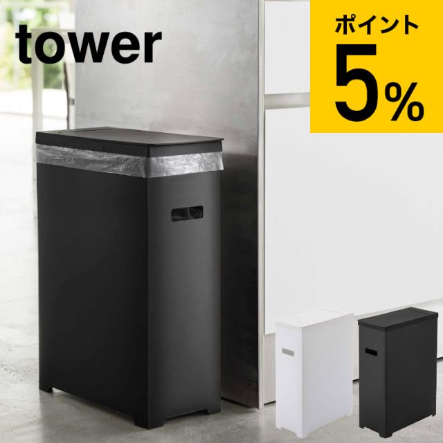 tower 山崎実業 送料無料 タワー ゴミ箱 スリム蓋付きゴミ箱 ホワイト ブラック 5203 5204 ごみ箱 ダストボックス 35L 誕生日プレゼント
