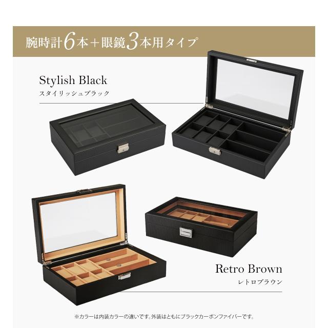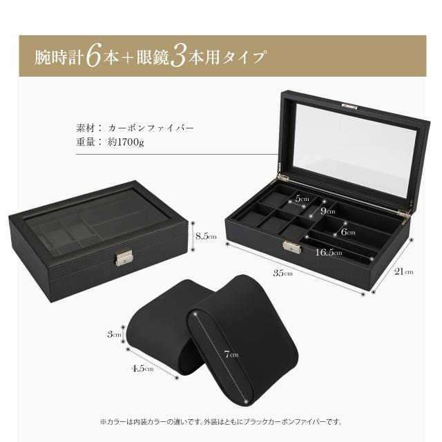 腕時計ケース 12本用 眼鏡 サングラス収納ボックス 腕時計6本 サングラス3本 時計ケース 腕時計ケース 時計 腕時計 収納 保管 ボックス コレクション ケース ウォッチケース ディスプレイ インテリア プレゼント ギフト カーボンファイバー 90日保証 GEUM