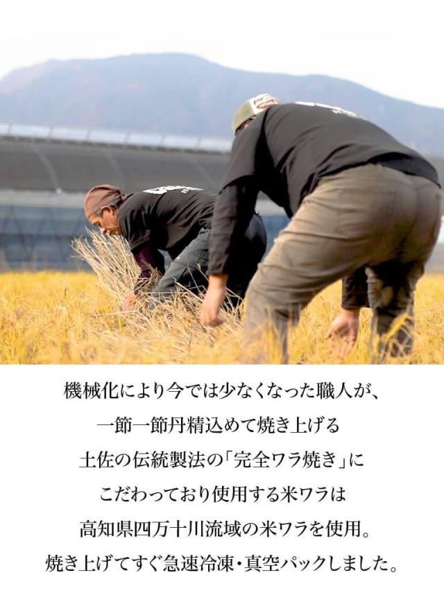 使用する米ワラは 高知県四万十川流域の米ワラを使用。焼き上げてすぐ急速冷凍・真空パックしました。