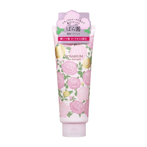 ●輝くツヤ髪、濃密ヘアパック。ローズオイルでダメージケア。 ローズオイル(グロス成分・カニナバラ果実油)、ローズヒップエキス(頭皮うるおい成分・カニナバラ果実エキス)+ローヤルゼリーエキス、ソルビトール(毛髪うるおい成分)。 ティーローズ・リビングローズ(香り成分)配合。 髪のダメージをしっかりケアし、ローズオイルが髪に美しく輝くツヤを与えます。 ばらのアロマ効果で、リラックス感を誘います。