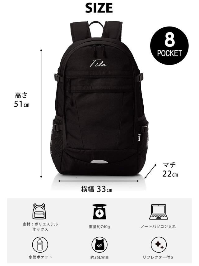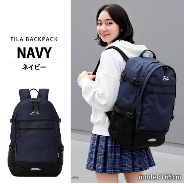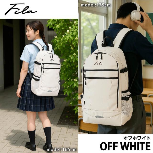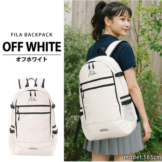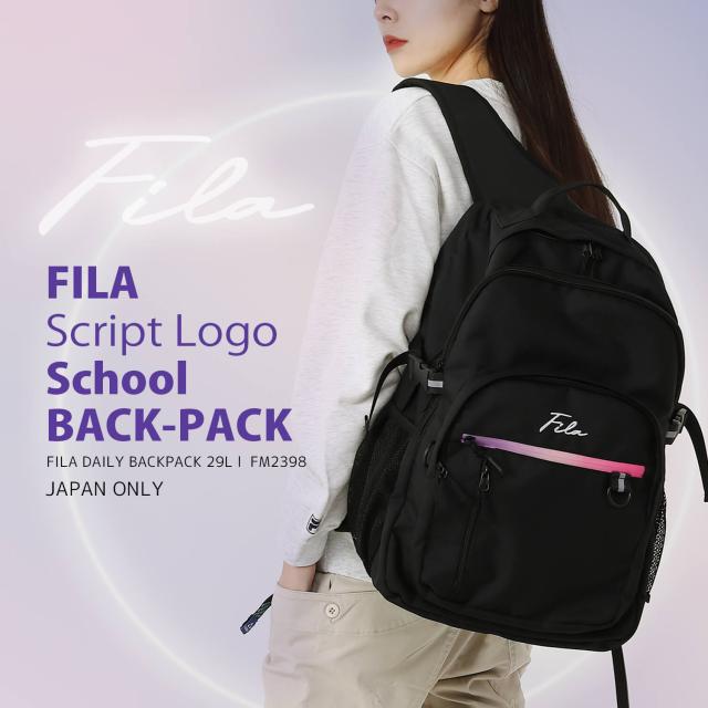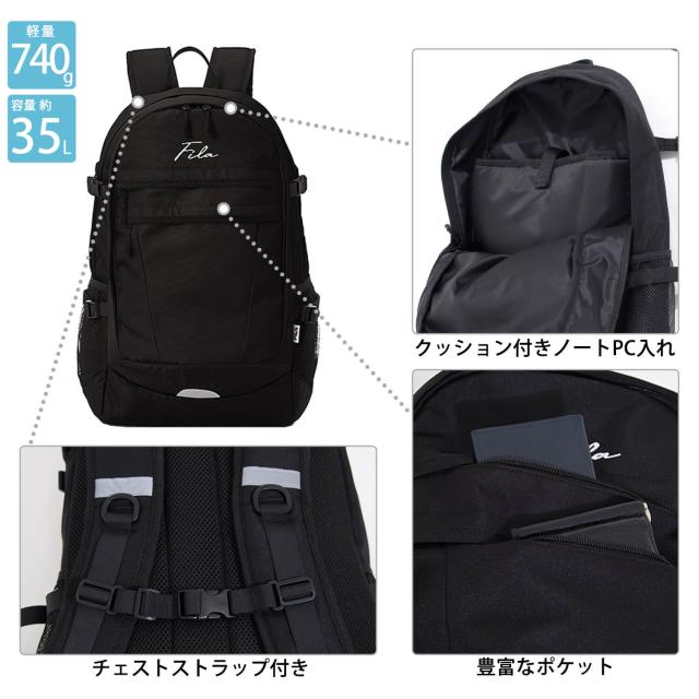 WEB限定 FILA フィラ 別注 リュックサック メンズ レディース 大容量 35L 通学 通勤 大人 2層式 バックパック 筆記体 アウトドア a4 軽量 旅行 outfit ポイント消化