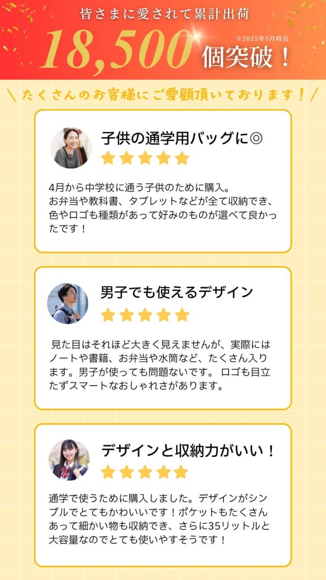 収納力の高さも大変優れており、2層式に加え、ポケットもたくさんあるので、パソコンや書類ファイル、雑誌、水筒などらくらく収納!