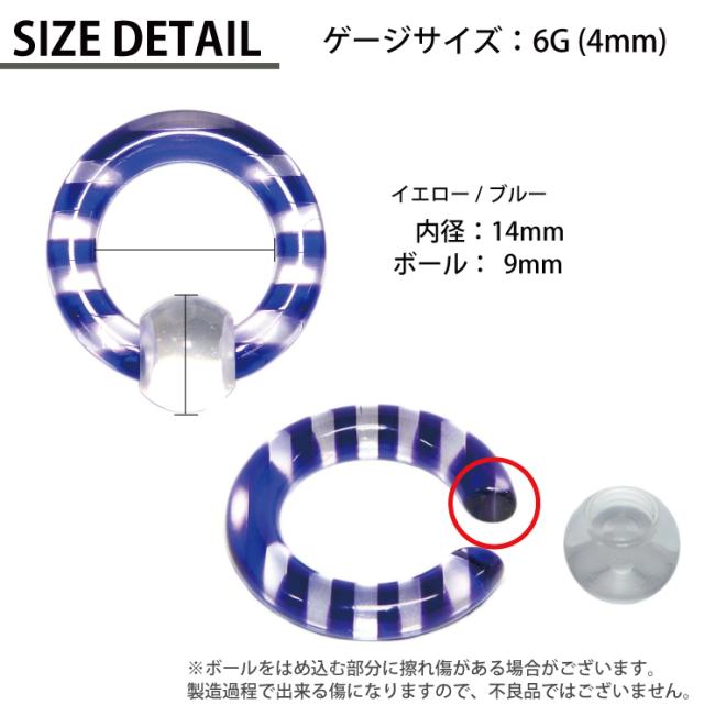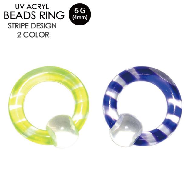 【メール便対応】キャプティブ ビーズリング 6G(4mm) UVアクリル ストライプ サークルリング【ボディピアス 軟骨ピアス トラガス イヤーロブ ヘリックス スタンダード】6ゲージ(4ミリ) ホワイト イエロー レインボー レッド ブルー┃