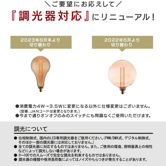 | 商品名 | E26 エジソン バルブ LED ノスタルジア ビッグノーマル、ビッググローブ200 E26 EDISON BULB LED NOSTALGIA BIG NORMAL, BIG GLOBE 200 |