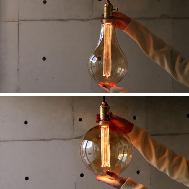 裸電球としてペンダントランプに吊るすだけでアートのような美しい照明に。