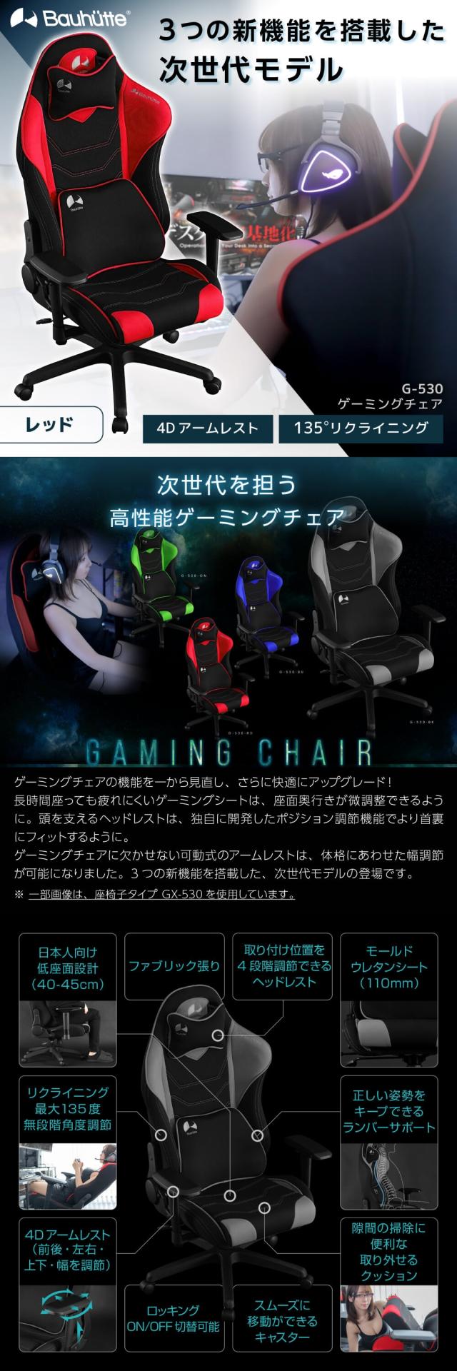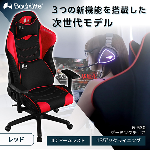 Bauhutte バウヒュッテ ゲーミングチェア G-530-RD ゲーミングチェア 在宅 リモート メーカー直送 日時指定不可