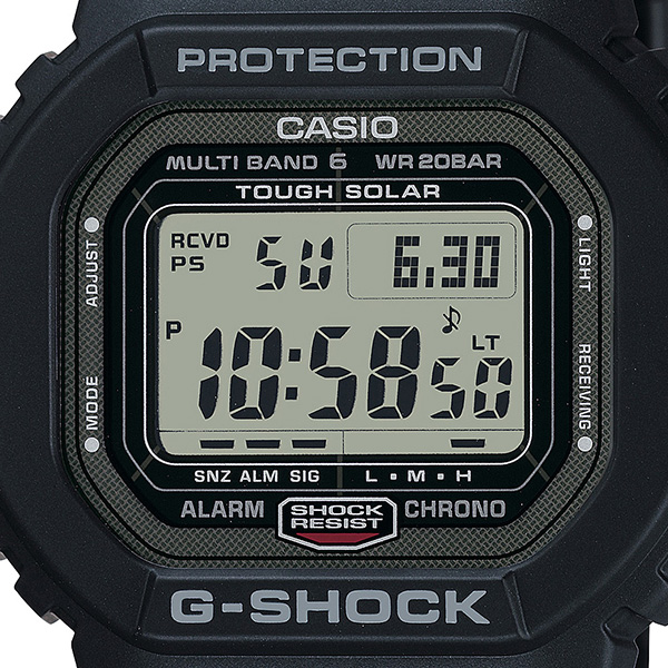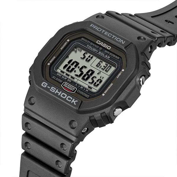 重厚なメタルケースで、スクリューバックを採用した初代モデルDW-5000に、先進のテクノロジーを搭載したモデルです。電波を通しづらく受信には不利なフルメタルケースで、かつ重厚になるスクリューバックを採用しながら、世界6局の標準電波を受信するマルチバンド6も搭載しました。初代モデルのDNAを色濃く受け継ぎつつ、更なるタフを追求。メタルケース・スクリューバックには耐摩耗性を強化するDLC(ダイヤモンドライクカーボン)処理を施しました。更に、スクリューバックはミラー加工も施し、上質感を演出。また、樹脂バンドには装着感の良いソフトウレタンを採用。1983年に誕生したG-SHOCKオリジナルデザインに先進のテクノロジーを搭載し、更に上質に仕上げたこだわりのモデルです。
