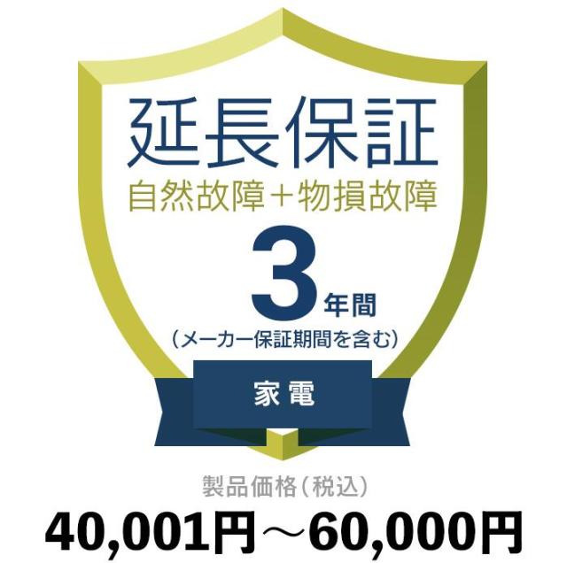 家電物損故障付き保証【3年に延長】40,001円〜60,000円 延長保証