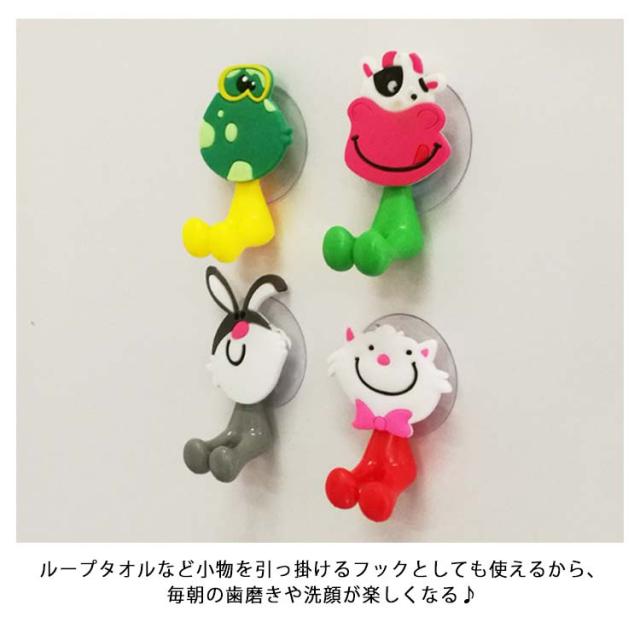 | 超キュートなアニマルモチーフ歯ブラシホルダー。 デザイン違いの5個セット、兄弟姉妹使い分けできるもできるから衛生的。 吸盤式なので壁を傷つけることなく、場所も取らないからとても便利。 ループタオルなど小物を引っ掛けるフックとしても使えるから、毎朝の歯磨きや洗顔が楽しくなる♪ | |