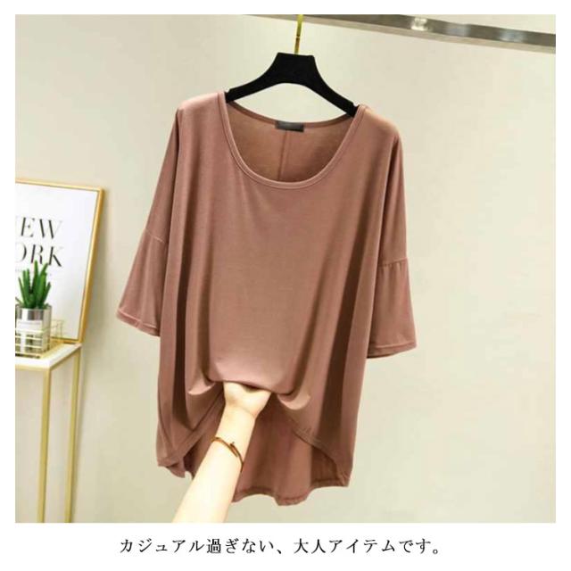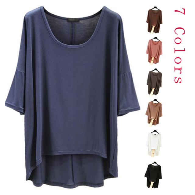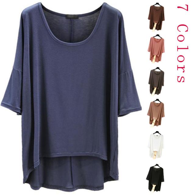 レディース トップス ドルマンTシャツ ゆるシルエット tシャツ ティーシャツ 7 Colors 5分袖 7分袖 トップス tシャツ カットソー 送料無料