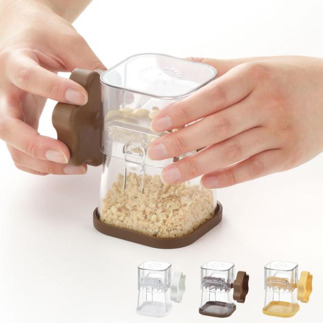 ハンドルを回すだけで、ナッツや板チョコを簡単に細かくクラッシュできます。