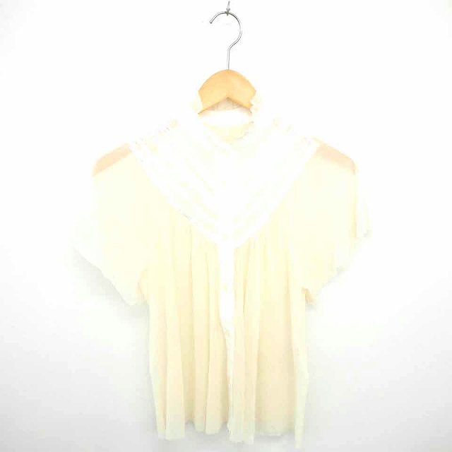 【中古】ページボーイ PAGE BOY シャツ ブラウス レース シースルー 透け感 薄手 半袖 M アイボリー ホワイト 白