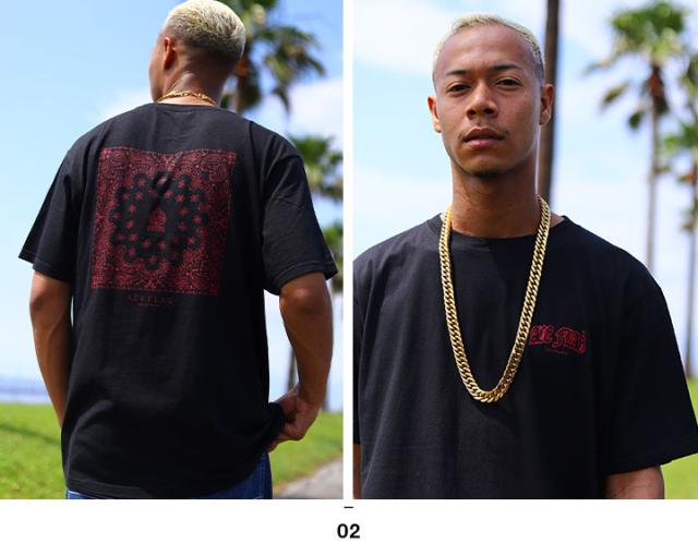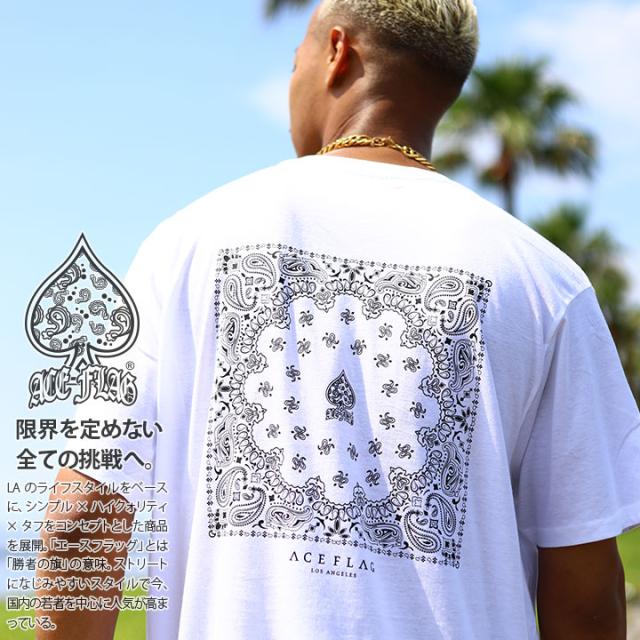 ACEFLAG Tシャツ 半袖 メンズ レディース 春夏用 白 黒 大きいサイズ エースフラッグ おしゃれ ペイズリー柄 ロゴ ボックスロゴ b系 ヒップホップ ファッション ダンス ストリート系 ブランド 服 新作 AF-TS-TS-048
