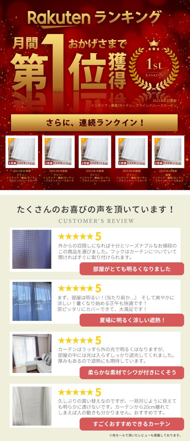入数:レースカーテン2枚・フック(カーテン装着済)