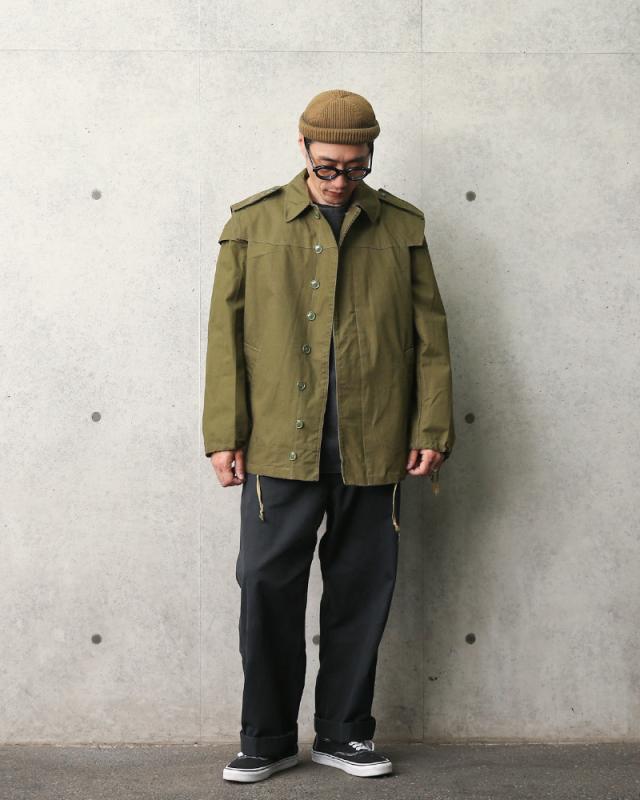 ルーマニア軍から実物放出の撥水性のあるウォータープルーフ ジャケットが入荷しました。デザイン性が良く、肩が2重のレイヤードになっていて、付け根にはアクションプリーツもあり機動性も良いです。裾、袖先にコードが内蔵されていて幅を調整可能です。色合い、シルエットも非常に良くデニムなどと相性がすごく良いです!肩のエポレットも脱着可能なので、エポレットが苦手な方も嬉しい仕様です。放出自体がレアで、ファッション性が非常に高い魅力的なジャケットだと思います。