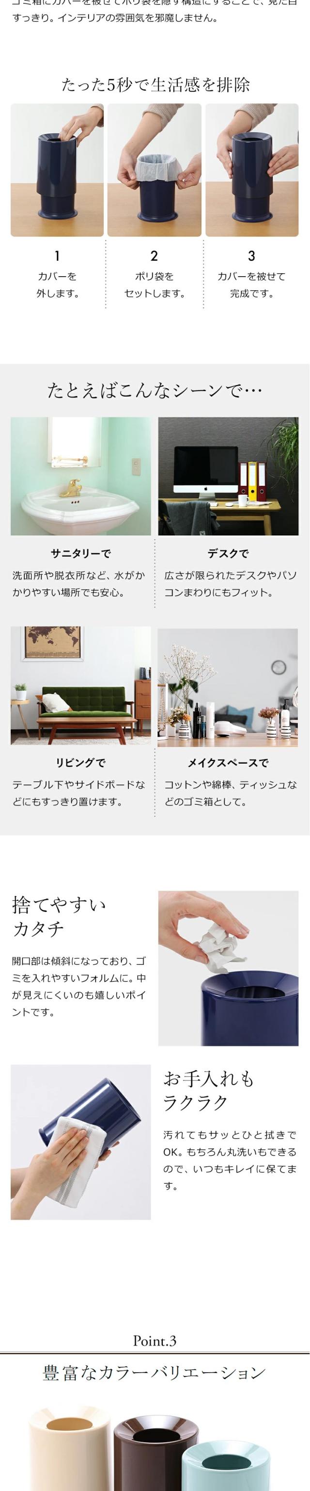 ゴミ袋を隠して生活感を抑えるという画期的なスタイルはそのままに、手のひらに収まるミニマムなサイズで卓上にピッタリ。デスク回りやドレッサー、サニタリーなどにも♪
