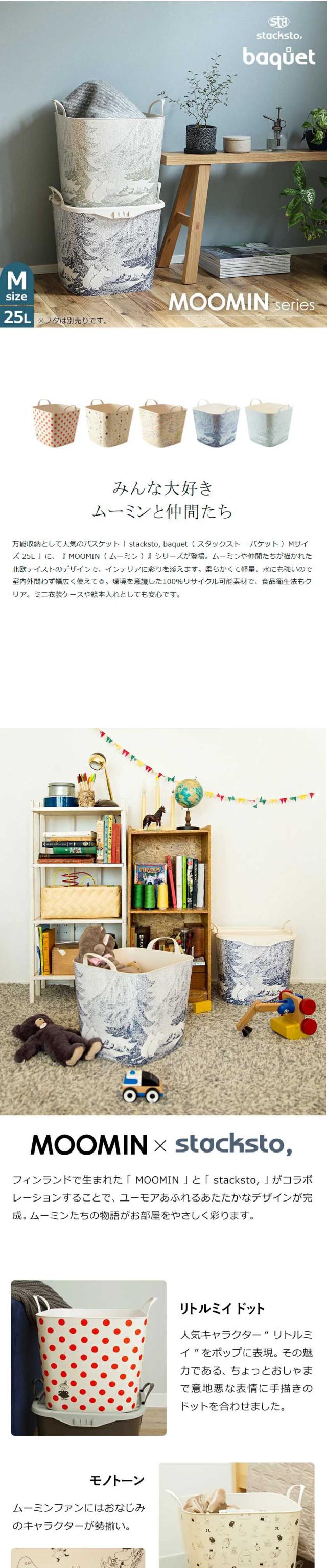 [ stacksto, baquet Mサイズ MOOMIN ]スタックストー コラボシリーズ バケット 25L 軽量 バスケット 洗濯かご 収納ボックス 収納ケース バケツ かご 持ち手 おしゃれ おもちゃ入れ 食品ストッカー ランドリーバスケット ムーミン 北欧 角型