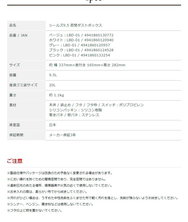 ■ Seals / シールズ 9.5 密閉ダストボックス LBD-01
