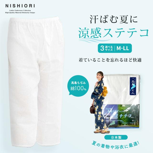 高島ちぢみ ステテコ 和装パンツ 下履き 下着 選べる3サイズ インナー 浴衣 夏用 楊柳 クレープ M L LL 日本製 汗取り レディース 高島晒協業組合 正規タグ商品