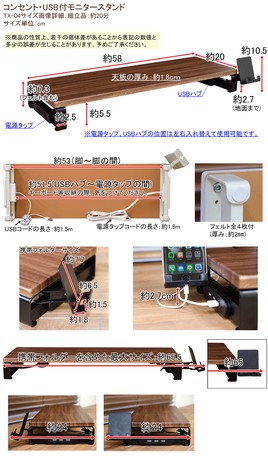 ◆USBポート・電源タップ・携帯フォルダー付き モニタースタンド◆